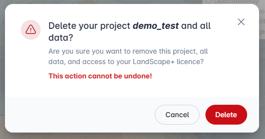 Click Cancel if you do not wish to delete the project. Click the red Delete button to permanently delete the project and all associated data.